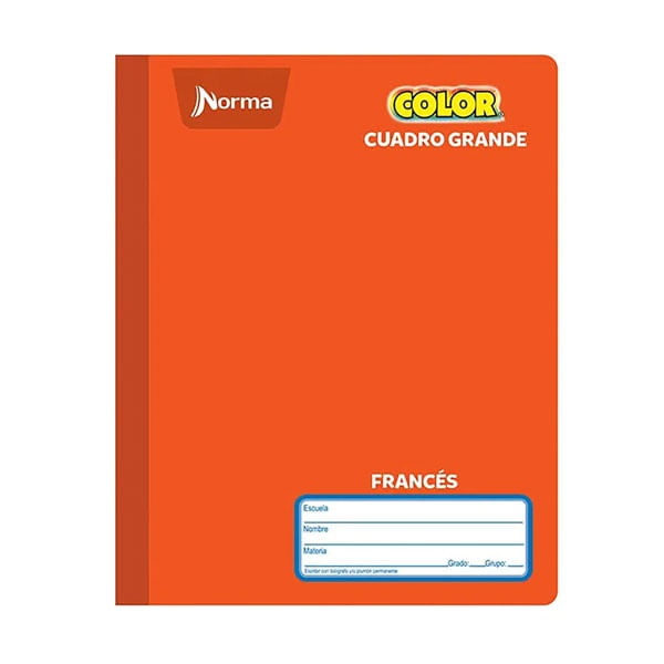 Artículos EscolaresCuadernos y LibretasCuaderno Forma FrancesaCuaderno Forma Francesa Cuadro Grande Norma Color 100 hojas