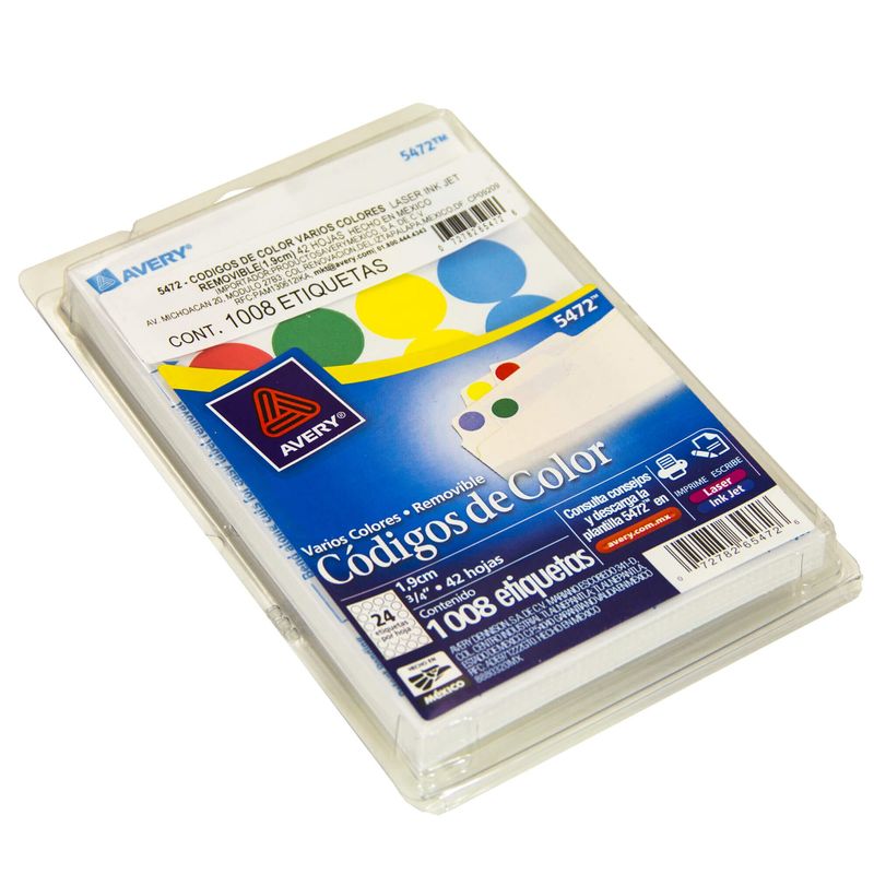 ETIQUETA REMOVIBLE CIRCULAR 3/4" COLORES SURTIDOS CON 1008 PIEZAS. ETIQUETAS CÓDIGO DE COLOR CON ADHESIVO REMOVIBLE, SE COLOCAN Y SE RETIRAN SIN DEJAR RESIDUOS, IDEALES PARA UTILIZARSE COMO CONTROL DE INVENTARIOS