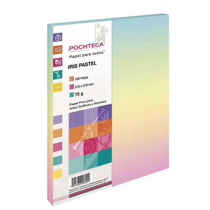 Hojas de Papel Tamaño Carta Pochteca Iris Pastel 100 hojas