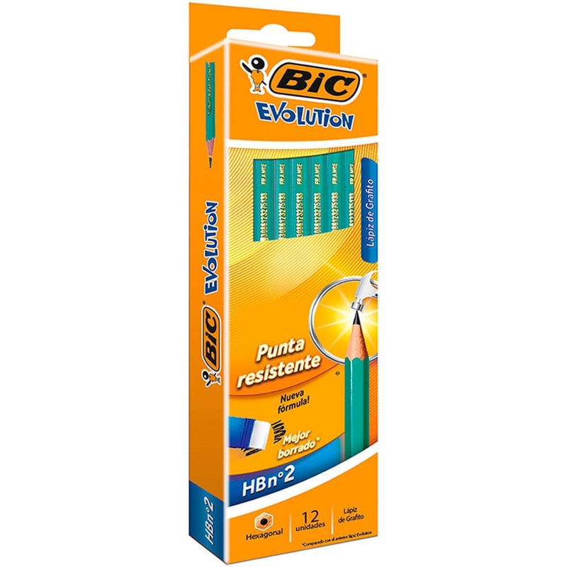 Este lápiz Bic Evolution tiene punta resistente de grafito HB, es decir, de intensidad y dureza medias, para un borrado sencillo que no deja muchas marcas.
