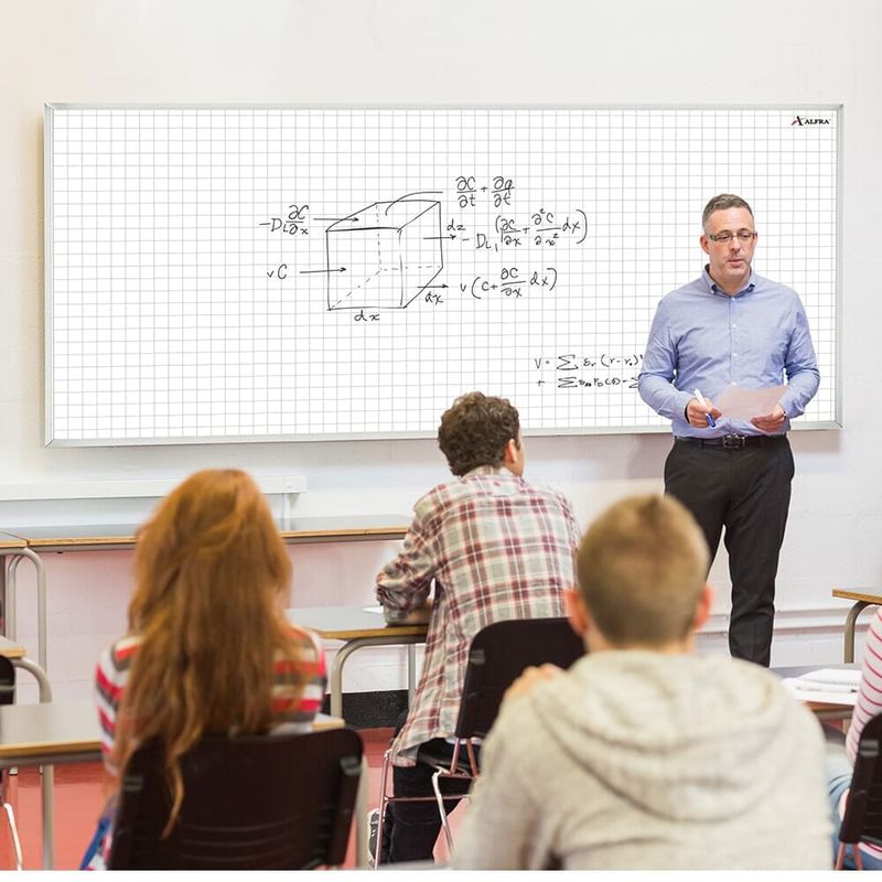 El Pizarrón Metálico PH Line Alfra cuenta con superficie metálica con guías ideales para escribir alineadamente, graficar información y realizar dibujos en 3D.